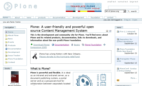 | 플론은 Zope 어플리케이션 서버-파이선(Python)언어로 만들어진 웹서버와 데이터베이스를 포함한 서버-로 만들어진 CMS입니다. CMS가 가진 유용성과 더불어 설치가 쉽고, 웹사이트 구조를 만들어 주고, 컨텐트를 쉽게 관리할 수 있기 때문에 처음 접하는 사람이라도 바로 사용할 수 있습니다. 오픈소스 프로젝트로 무료로 사용할 수 있으며, 많은 개발자들이 성능개선을 위하여 업그레이드 및 확장 프로그램을 개발하고 있습니다.